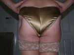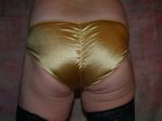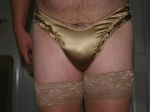 Just Chillin in Gold Satin Ruffle Panties and Black Satin bra, with my favorite heels, and my Panty Master, ( she took the Pic) she promised me a special night tonight, cant wait to she has in store.