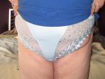 i really hope everyone likes my pictures and my panties. what would any of you like to do with me, in my panties? would you rub the material between your fingers? would you pat my fanny? would you like to see how the lace feels? would you reach inside the leg openings to see what you might find? the material on these is very very soft. it is a heavy nylon and i love feeling it and wearing it. i love how it feels on my sensitive skin. mmmmm