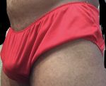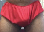 Red panty? I don’t know what these are. I got them from the Salvation Army, they were with the other panties buts they look like they were an attached brief to something. There is no tag, or even a gusset. There is a middle seam, maybe they were attached to a costume or something. I’m not one for butt pics vecas I have no ass but i Had to for these. They’re a pair of real ass crack showers, I didn’t show it So just take my word for it. Theyre really baggy in the body but are Real low rise on the waist.